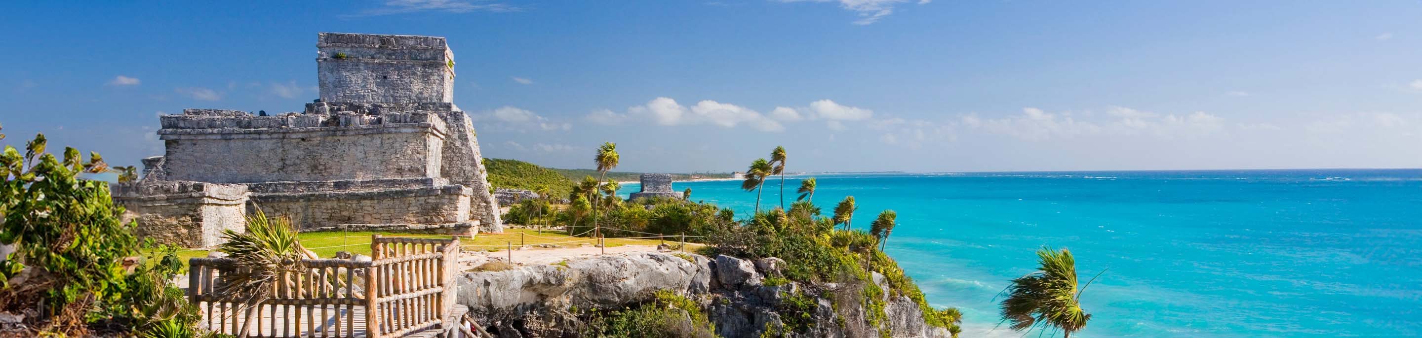 Visita las ruinas de Tulum, situadas en un acantilado con vistas espectaculares al mar Caribe.